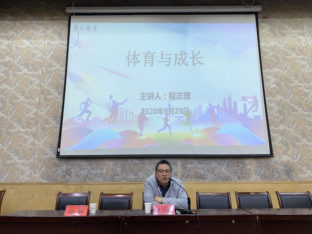 程志理主编提及:体育本体特征是快乐,而现实是我们把体育手段论扩大化,忘记了体育目的——快乐!我们没有注意体育在人的发展过程中意义——我们的认知体系中,身体认知在先,且是基础性认知。简短的开场,把师生们情绪调动起来,接下来他从三个主题谈体育与成长关系:(1)从身体运动的主体性特征入手,引发出人体动作行为过程中“意识活动”与“无意识活动”的区分。他说:“我们往往强调概念认知,致使认知体系中存在严重缺失,即忽视身体在认知中的价值与意义,致使运动实践中运动主体习惯于(或注重)脑的思维,而忽略对自身身体的认知”。(2)系统阐述了“身体认知”的时空经验,用实例验证了运动者是以自己身体来感知时间和空间,人体是复杂适应系统,身体同样是一种认知方式,体育学应该纳入认知科学,践行体育的方法论意义。程志理强调,体育学的研究应该从生物学层面回归到人类学,体育作为公司教育的内容,从价值关系上讲,体育是人的成长方式。(3)体育是人学研究巅峰。程老师深入浅出,入情入理。在报告中特别强调一个概念——体认。指出,体认是低级形式,但是体认是基础认知形式。体认范式研究方法重视“本体感受”,“本体感受”是体认的认识论表述,为此,运动情境的口述史成为体认方法学的论证依据,并以“地心说”到“日心说”的例子,有效支撑了自己的观点。