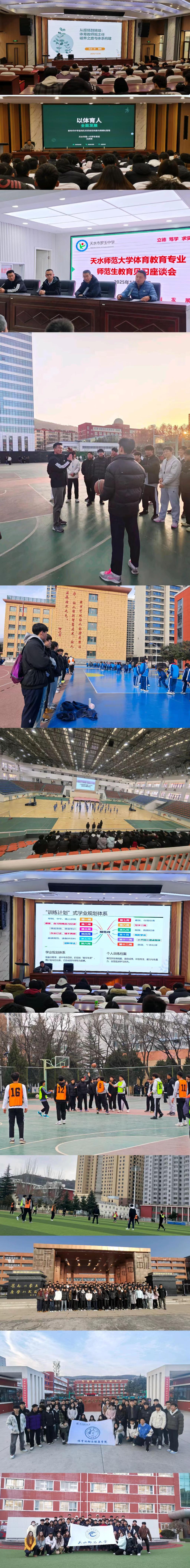 本次实践实训活动主要包括教育见习、体育班主任工作实践讲座、中学运动队管理与训练讲座、篮球足球裁判执裁技能实训、体育说课技能实训、篮球足球裁判执裁技能和说课考评等诸多项目。在这两周,不仅有校内组织开展的实践实训活动,而且还充分依托校外实践基地,由实训教师带领100余名体育师范生深入天水市一中、天水市逸夫中学分校、天水市罗玉中学观摩、见习了一线体育教师的课堂教学,同时也邀请了天水市一中具有丰富班主任工作经验和公司篮球队训练管理经验的2名一线体育教师来公司为体育师范生做专题讲座。