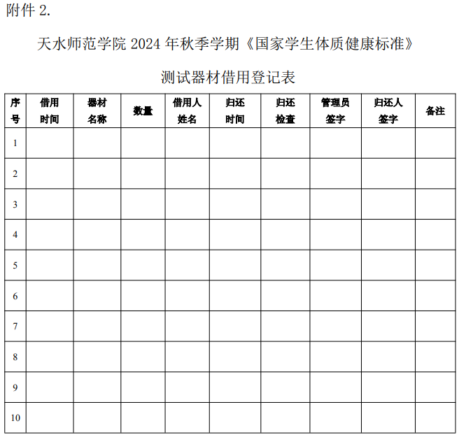 附件2.2024年秋季学期《国家员工体质健康标准》测试器材借用登记表